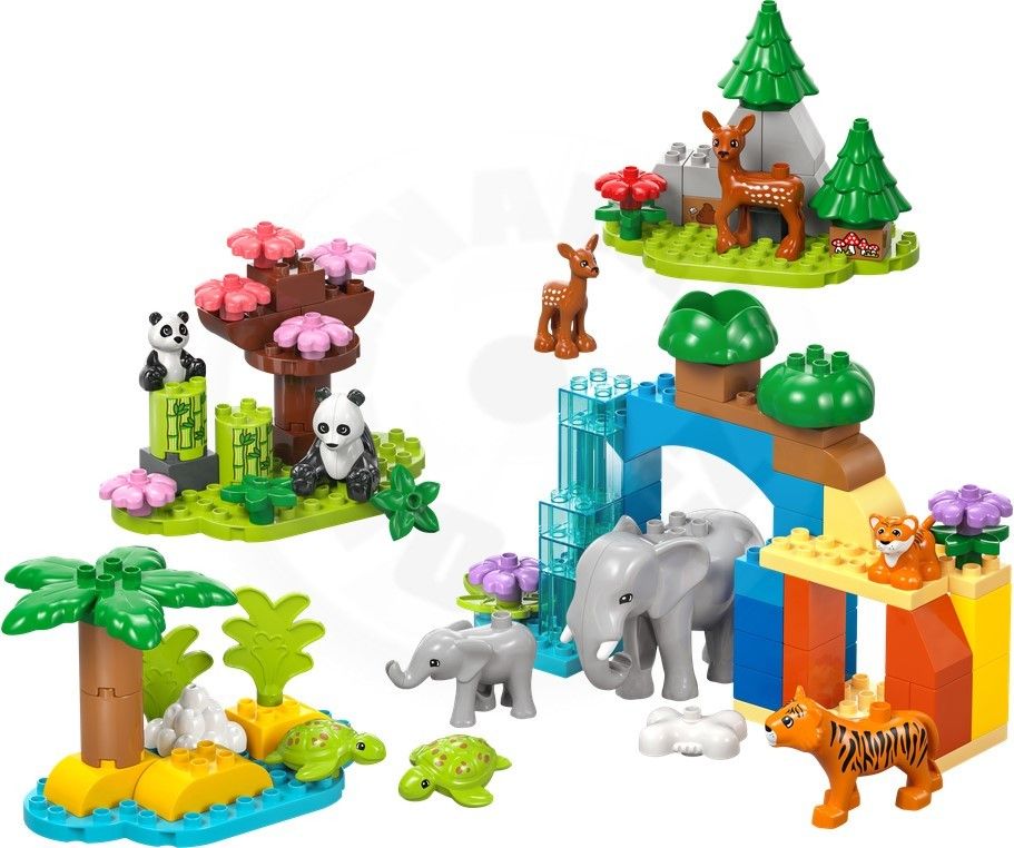 • Vzdelávacie stavebnice 3 v 1 pre malých milovníkov zvierat deti naučia veľa dôležitých zručností • Deti sa učia, kde žijú figúrky divokých zvieratiek a čo jedia • Tvorivá hračka obsahuje figúrky tigra, korytnačky, slona, jeleňa a pandy •Táto stavebnica pre deti bola testovaná na maximum a ponúka bezpečný herný zážitok • Vzdelávacie stavebnice LEGO® DUPLO® pomáhajú malým staviteľom porozumieť okolitému svetu • Scénka savany meria cez 20 cm na výšku a 34 cm na šírku