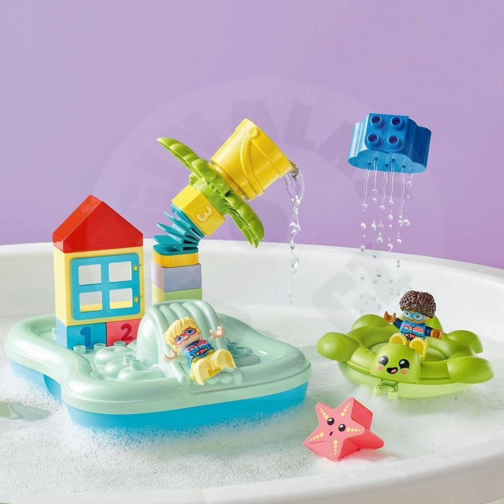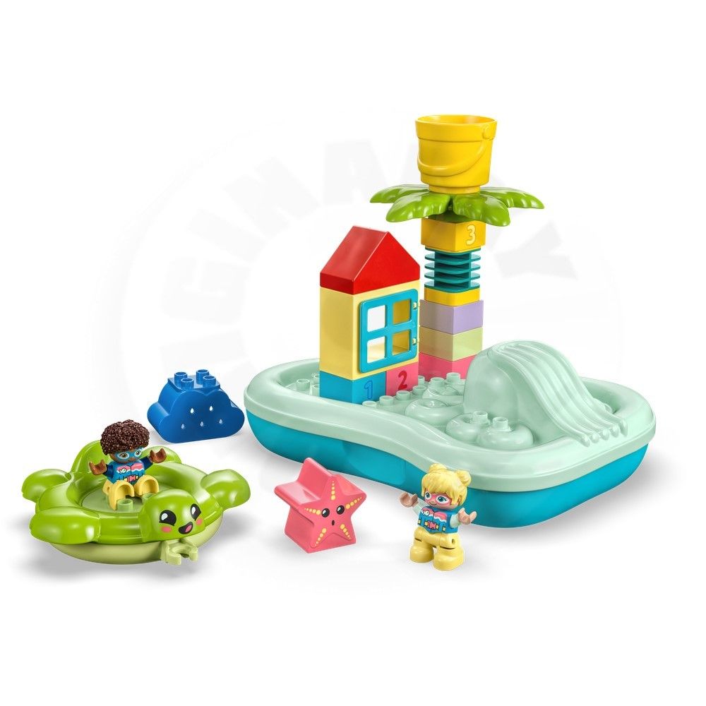 • Hračka Aquapark pomáha rozvíjať motorické schopnosti a učí deti poznávať čísla • Súčasťou je ostrov, kocky s číslami, nafukovací korytnačí kruh a figúrka dieťaťa • Nechýba veľa prvkov na objavovanie, vrátane vedierka na vodu pre radostné prelievanie • V aplikácii LEGO® Builder nájdete digitálnu verziu návodu na stavanie • Stavebnice LEGO® DUPLO® vedú deti k nápaditému hraniu a podporujú ich vývoj • Dieliky LEGO® DUPLO® spĺňajú najvyššie odborové štandardy kvality • Kocky a dieliky LEGO® DUPLO® spĺňajú prísne normy zamerané na bezpečnosť detí • Hračka do kúpeľa pre deti od 2 rokov • Meria cez 22 cm na výšku a 25 cm na šírku