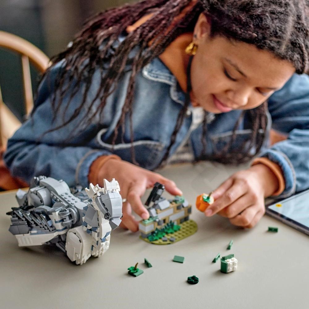 • Doteraz najväčšia figúrka Hipogrifa z kociek z radu LEGO® Harry Potter™ • Vystavte si pohyblivú figúrku kúzelného tvora alebo sa s ňou pustite do hrania • Kreatívny model autentického detailného hipogrifa, ktorý inšpiruje ku kreatívnemu hraniu • Časť ® Harry Potter™ pre deti od 9 rokov • S aplikáciou LEGO® Builder si môžete ukladať postup, približovať a otáčať model v 3D • Jedna z mnohých stavebníc z kolekcie LEGO® Harry Potter™ (predávajú sa samostatne) • Zostaviteľná figúrka hipogriff meria cez 18 cm na výšku