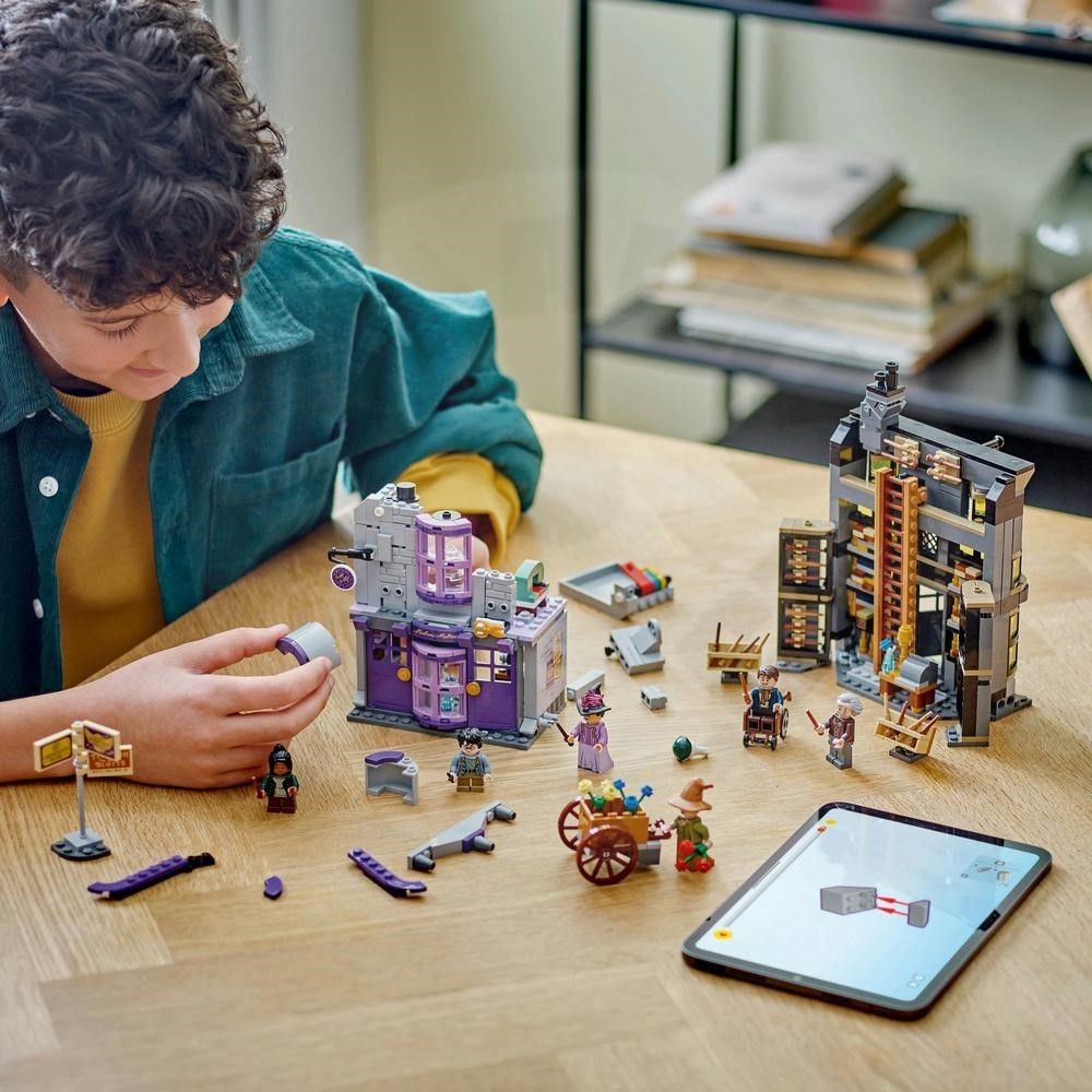 • Kúzelná stavebnica s 2 autenticky prepracovanými obchodíkmi v Priečnej ulici • 6 minifigúrok LEGO® Harry Potter™, vrátane Garricka Ollivandera a Padmy Patilovej • Ollivanderov obchod s rebríkom, 26 paličkami a ďalšími doplnkami • Obchod madame Malkinovej so zostaviteľnými figurínami, klobúkmi a plášťami,tip pre deti a fanúšikov od 8 rokov • Stiahnite si aplikáciu LEGO® Builder s interaktívnymi 3D návodmi na stavanie • Prepojte obchody medzi sebou alebo k ďalším stavebniciam z Pričnej ulice (predávajú sa samostatne) • Ollivanderov obchod z kociek meria cez 19 cm na výšku