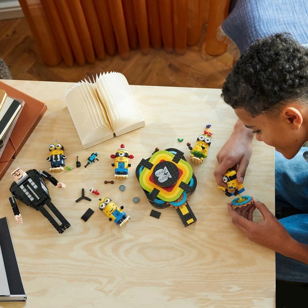 • Výstavná hračka so zostaviteľnou figúrkou Grua a mimoňov pre deti od 9 rokov • Gru má kĺbové paže, ruky a prsty a mimoni sa pýši množstvom doplnkov • Deti otočia sediaceho mimone Mela a ostatní začnú „tancovať“ okolo svojho šéfa •Deti môžu približovať a otáčať modely v 3D pomocou intuitívnej aplikácie LEGO® Builder • Užite si ešte viac zábavy s ďalšími hračkami z radu LEGO® Ja zloduch 4 (predávajú sa samostatne) • Stavebnica sa skladá z 839 dielikov a meria cez 28 cm na výšku a 23 cm na šírku