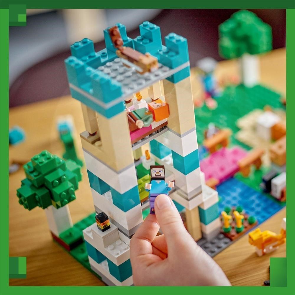 • 2 svety Minecraft® v 1 parádnej zbierke kociek a dielikov LEGO® Minecraft • Súčasťou je mnoho známych postáv a mobov vrátane Stevea, Alex a Creepera • Deti si postavia skutočnú pevnosť, mačací svet a vlastné dobrodružstvo z hry Minecraft® • Darček pre deti od 8 rokov• Obe varianty modelov merajú cez 36 cm na šírku • Deti môžu približovať a otáčať sady v 3D pomocou intuitívnej aplikácie LEGO® Builder •