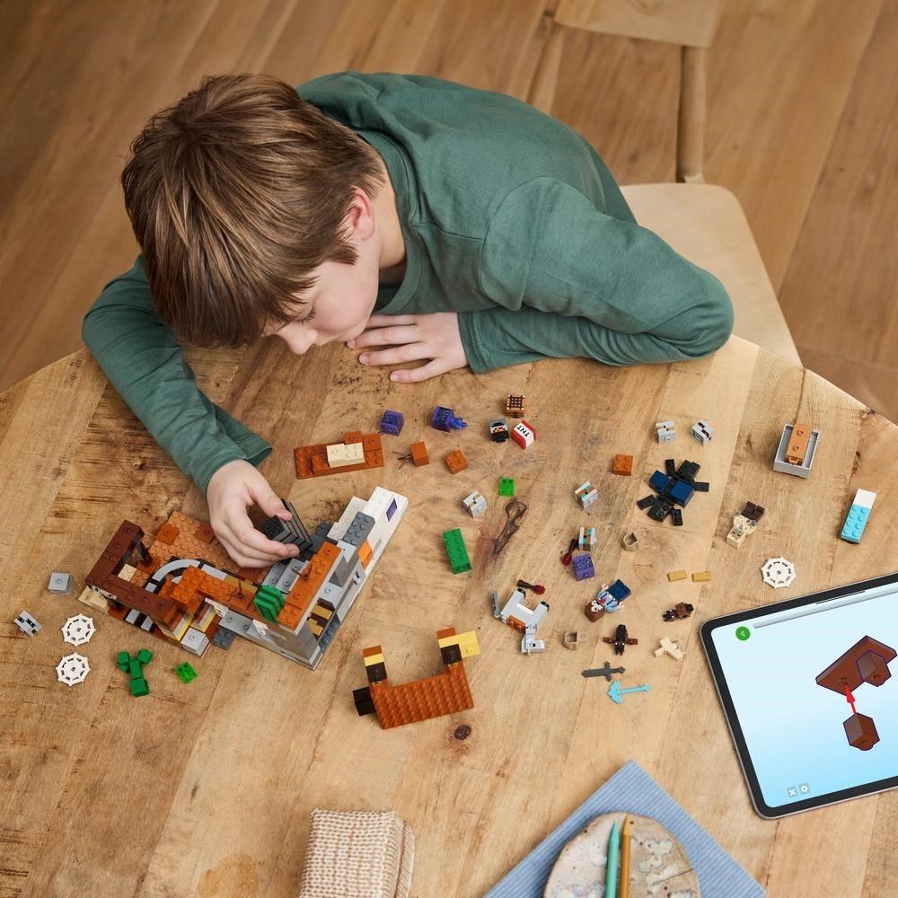 • Stavebnice LEGO® Minecraft® v opustenej banskej šachte • Medzi figúrkami Minecraft® nájdete prieskumníka pustiny, Creepera a jaskynného pavúka • Deti odpália kamene a potom prepravia kryštály v banskom vozíku, zatiaľ čo bojujú s moby • Funkcia výbuchu TNT odhalí kryštály medi, LEGO® Minecraft® predstavuje kreatívny narodeninový darček pre chlapcov aj dievčatá • Deti môžu približovať a otáčať stavebnice v 3D pomocou intuitívnej aplikácie LEGO® Builder • Stavebnica sa skladá z 538 dielikov a meria cez 20cm na výšku a 23cm na šírku