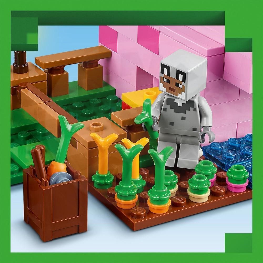 • Stavanie a farmárčenie so zvieratkami s LEGO® Minecraft® • Obsahuje hrdinu vo vlčom skine, prasiatko, dospelé prasa, včelu a zombifikovaného piglina • Hráči postavia prasaciu chlievik LEGO® Minecraft®, ktorý je plný zábavy vo vnútri aj vonku • V interiéri nájdete pracovný stôl z Min. Minecraft® predstavuje skvelý darček pre deti k narodeninám alebo Vianociam • Možno kombinovať s ďalšími stavebnicami z radu LEGO® Minecraft® (predávajú sa samostatne) • Stavebnica sa skladá z 238 dielikov a meria cez 8 cm na výšku a 19cm na šírku