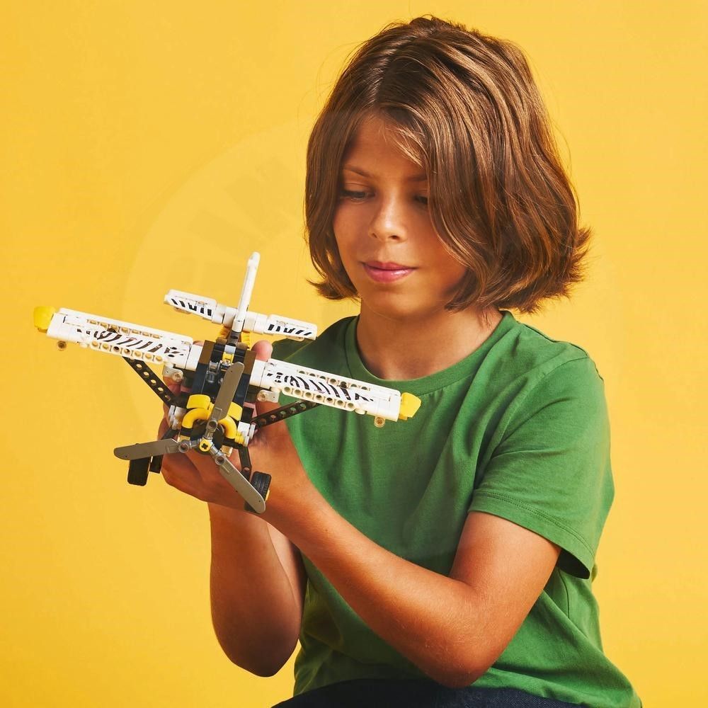 Model lietadla má zábavnú zebrovanú potlač, ktorá odráža úlohu, ktorú tieto lietadlá hrajú pri ochrane voľne žijúcich živočíchov. Stavebnice vozidiel LEGO Technic sa pýšia realistickými pohybmi,