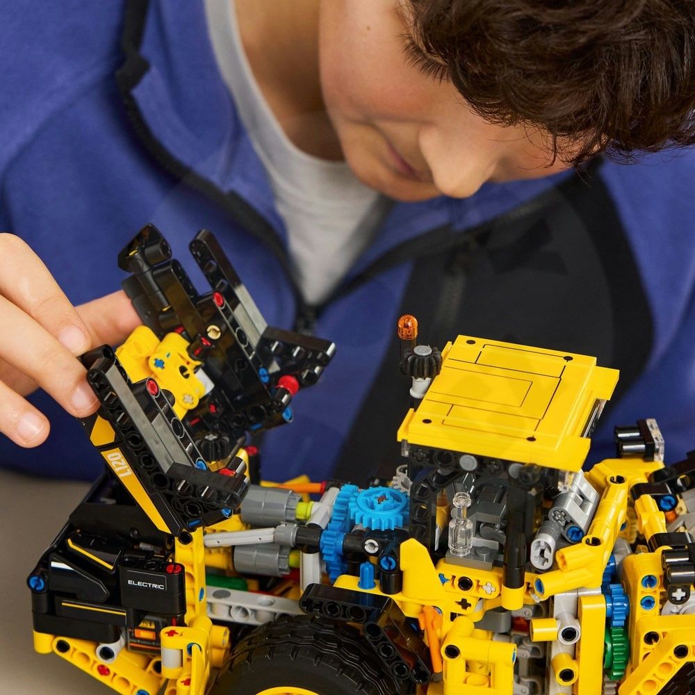 Dopřejte dětem zábavnou stavitelskou výzvu: Stavění detailů LEGOR Technic Kolový nakladač Volvo L120 Electric.