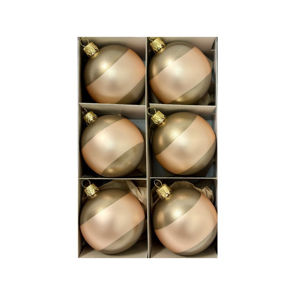 Elegantné sklenené gule 6 cm – zlatohnedé s medeným pruhom