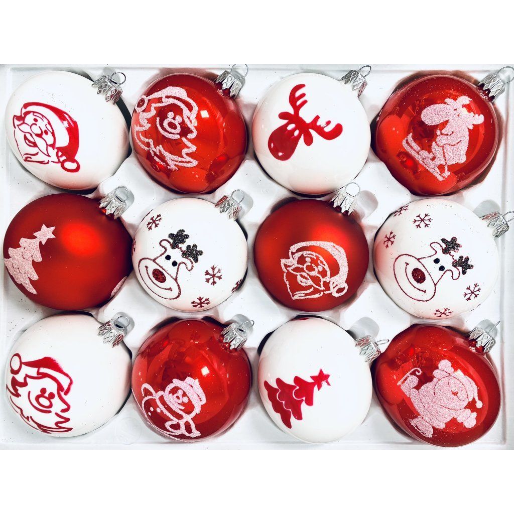 IRISA Sklenená ozdoba SADA Sandefjord 7 cm, balenie 12 ks červená, biela
