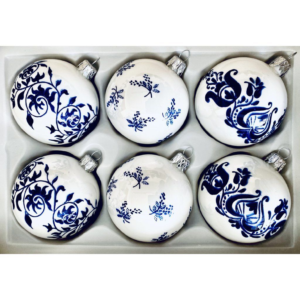 Sada šiestich sklenených gulí s priemerom 7 cm, ktoré zaujmú prepracovaným cibulákovým motívom v sýto modrej farbe na bielom základe. Elegantná voľba pre milovníkov tradičných vzorov a štýlu.