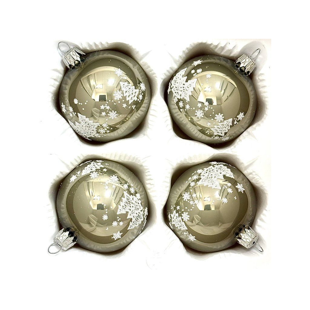 Kúzelná sada štyroch sklenených vianočných gulí s priemerom 7 cm prináša sviežu eleganciu v jemne zelenkavom odtieni so strieborným leskom. Ručne fúkané a maľované ozdoby sú zdobené bielymi motívmi zasnežených stromčekov a vločiek, ktoré navodia atmosféru zimnej rozprávky. Tieto tradičné české vianočné ozdoby z dielne Irisa sú ideálnou voľbou pre tých, ktorí hľadajú originálnu kombináciu prírodných tónov a sviatočnej noblesy. Skvele sa hodia k bielej, zlatej i klasicky zelenej výzdobe a dodajú vášmu stromčeku jedinečný charakter.