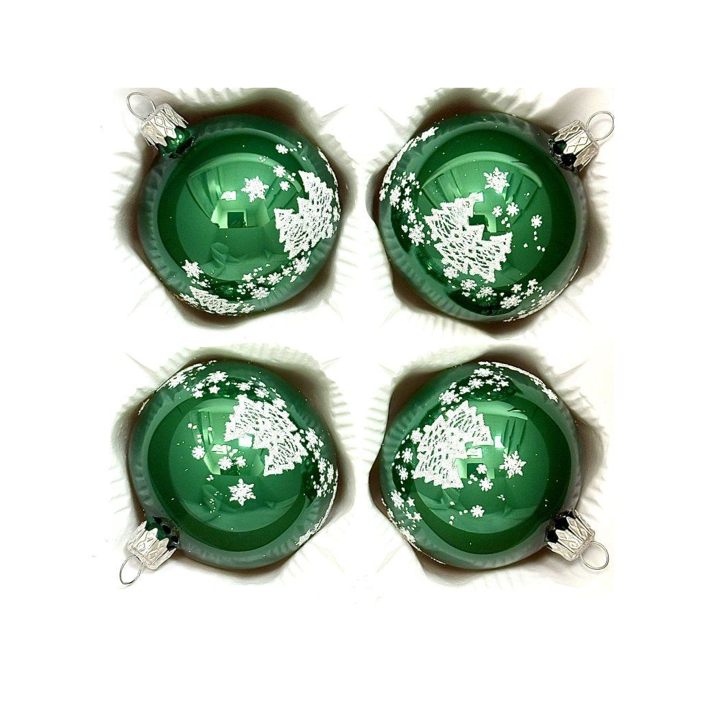 Zelené vianočné gule so stromčekom a vločkami – 4 ks, 7 cm