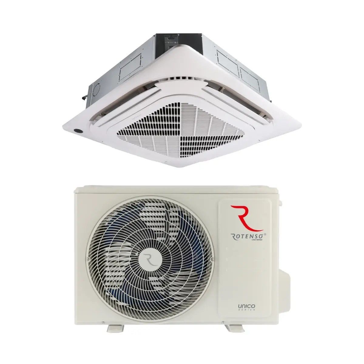 Kazetová klimatizácia Rotenso ® Tenji CS je dostupná v rozmeroch 950×950, šiestich výkonoch (od 7,0 kW do 15,2 kW), v triede chladenia A++. Vďaka 360° konštrukcii prúdenia vzduchu efektívne distribuuje vzduch v miestnosti, čím zaisťuje efektívne chladenie alebo vykurovanie. Kazetová klimatizácia Tenji má široké využitie v komerčných priestoroch, kanceláriách, obchodoch, ordináciách, servisoch atď. Kazetové jednotky sa čoraz častejšie inštalujú aj do bytov a rodinných domov – všade tam, kde je podhľad. Kazety Tenji sa vyznačujú širokými možnosťami ovládania. Ako príslušenstvo sú k dispozícii tieto ovládače: káblový, centrálny, striedavý a inteligentný Wi-Fi modem.