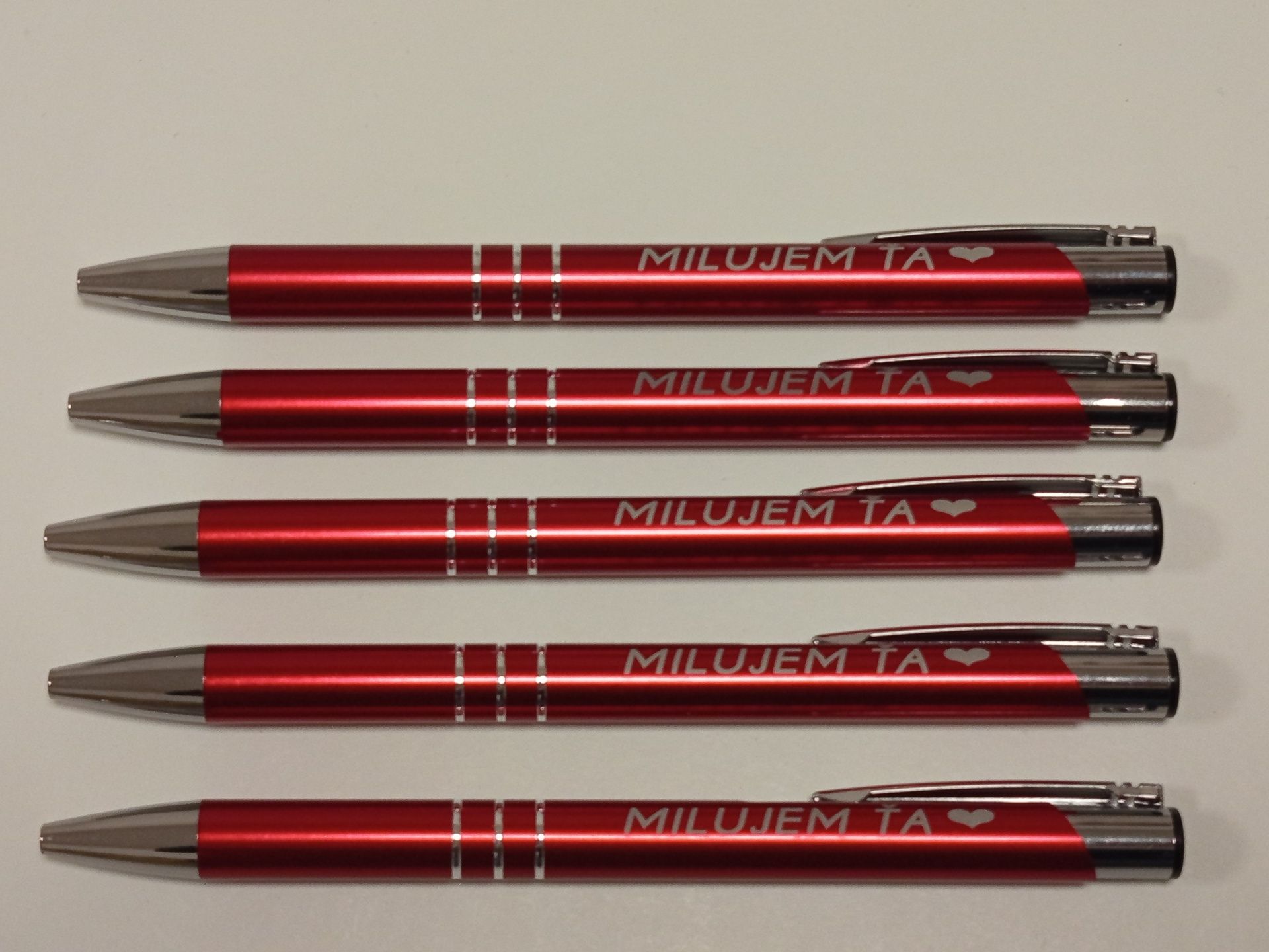 Úvod KOVOVÉ A PLASTOVÉ PERÁ KOVOVÉ PERÁKovové guľôčkové pero , červené , s gravírovaním ,,Milujem Ťa,,