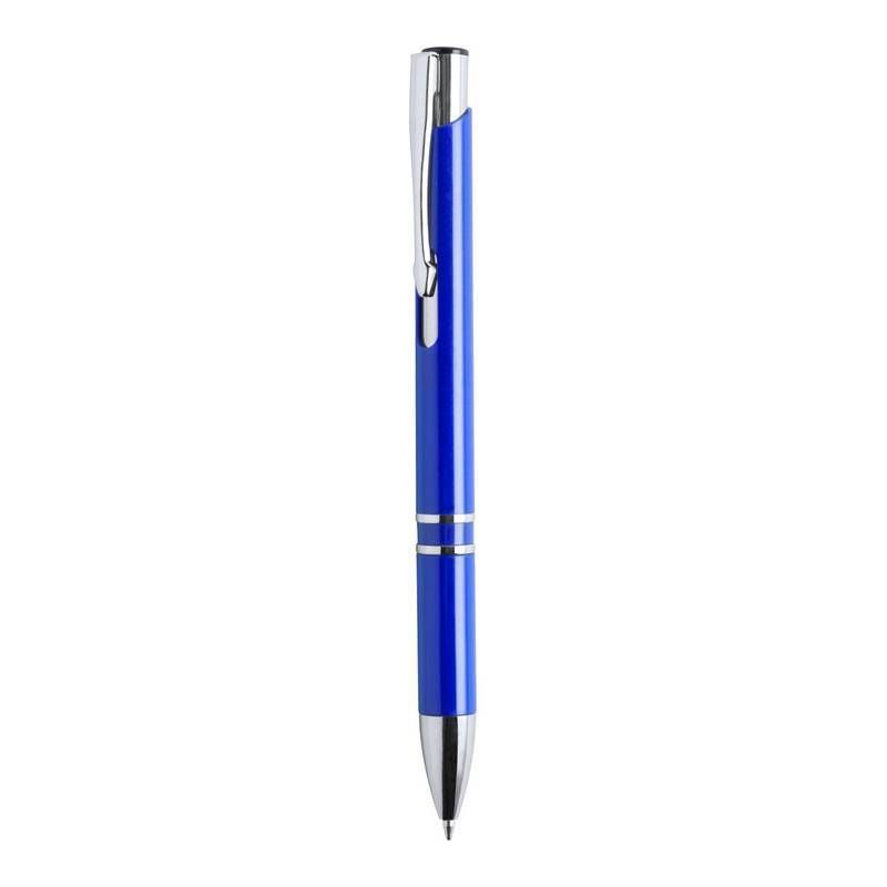 Plastové guľôčkové pero s lesklým klipom a špičkou, s modrou náplňou.