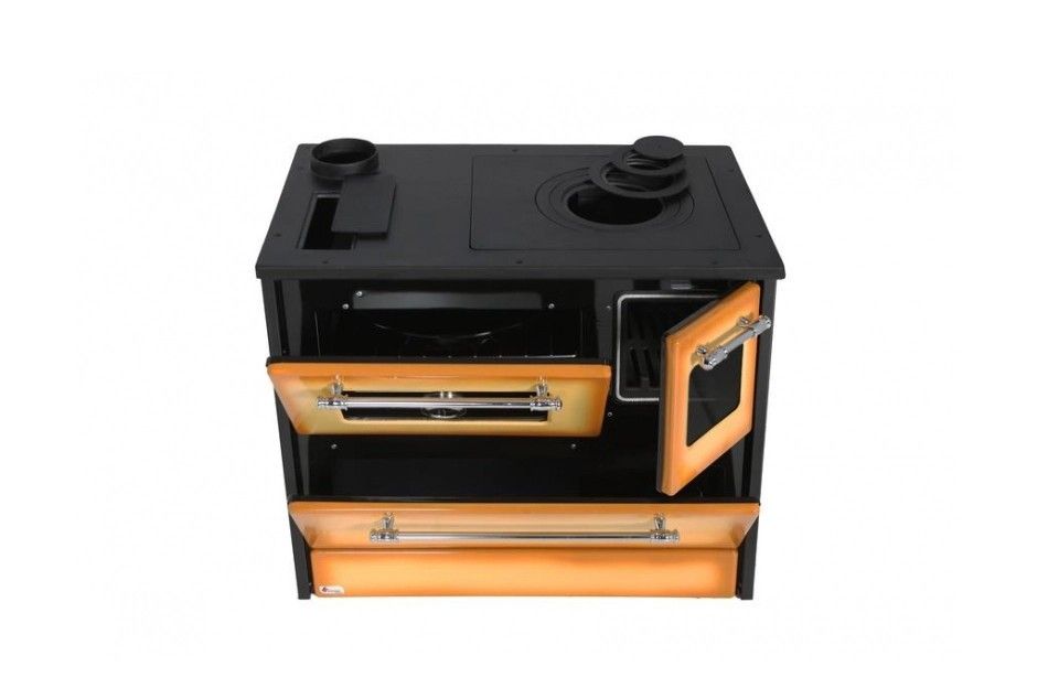 Sporák disponuje varnými platňami, regulátorom prívodu vzduchu a prúdenia tepla, praktickými dvierkami ohniska a dvierkami rúry na pečenie. Varné platne a ohnisko sú vyrobené z liatiny. Praktická rúra na pečenie má dostatočnú šírku, a to 45 cm a na dvierkach sa nachádza praktický teplomer. Vyberateľný rošt v nej môžete vložiť na spodnú a strednú pozíciu. V sporáku sa tiež nachádza veľká časť na odkladanie dreva a nádoba na popolník.