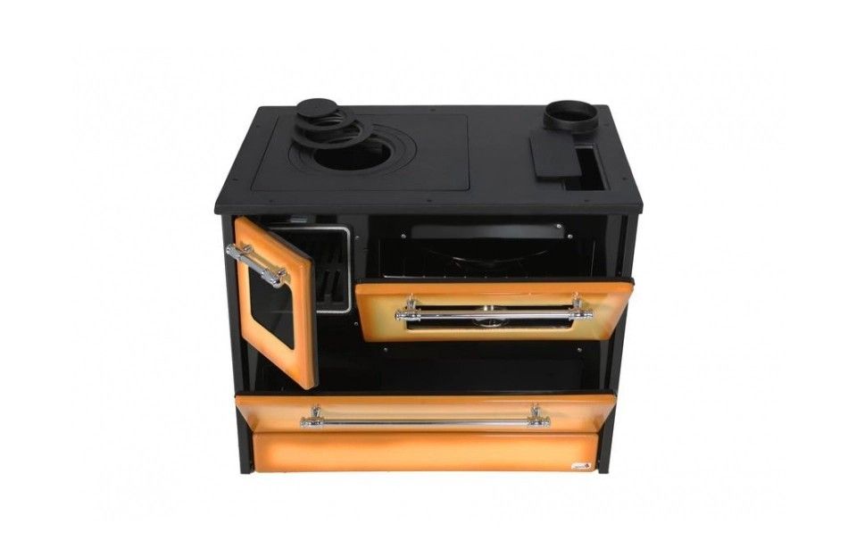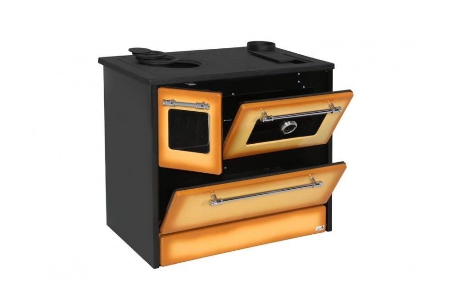 Sporák disponuje varnými platňami, regulátorom prívodu vzduchu a prúdenia tepla, praktickými dvierkami ohniska a dvierkami rúry na pečenie. Varné platne a ohnisko sú vyrobené z liatiny. Praktická rúra na pečenie má dostatočnú šírku, a to 45 cm a na dvierkach sa nachádza praktický teplomer. Vyberateľný rošt v nej môžete vložiť na spodnú a strednú pozíciu. V sporáku sa tiež nachádza veľká časť na odkladanie dreva a nádoba na popolník.