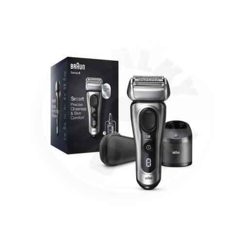 Obsah balenia holiaci strojček Braun Series 8 8357 čistiaca stanica 4v1 čistiaca náplň cestovné puzdro napájací kábel