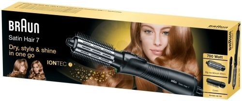 Uľahčite si prácu s každodennou úpravou účesu. S teplovzdušnou ondulačnou kefou Braun Satin Hair 7 objavíte množstvo účesov, ktoré váš strih ukrýva bez toho, aby ste museli ku kaderníkovi. Upravte a vysušte si vlasy v jednom kroku, a chráňte ich pomocou prelomovej technológie IONTEC. Jedinečná technológia určená špeciálne na ochranu zdravia vašich vlasov. Zelené iónové trysky uvoľnia do vlasov pri ich úprave efektívne milióny saténových iónov, ktoré pritiahnu čiastočky vlhkosti zo vzduchu. Výsledkom je bezchybný, žiarivo lesklý účes, ktorý odráža zdravie vašich vlasov. Špeciálne navrhnuté nástavce s kefou a hrebeňom chránia vďaka svojej unikátnej technológii hladkých hrotov vlasovej kutikuly pred poškodením a lámaním. 2 stupne nastavenia umožňujú prispôsobiť teplotu a intenzitu prúdenia vzduchu podľa vašich potrieb.