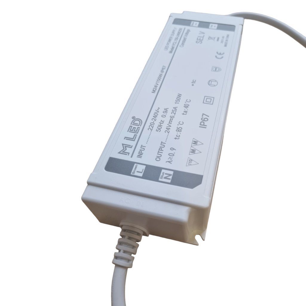 Napájací zdroj značky MLED s výkonom 150W pre LED pásy a iné LED osvetlenie s konštantným napätím 24V určený pre exteriér ako aj interiér.