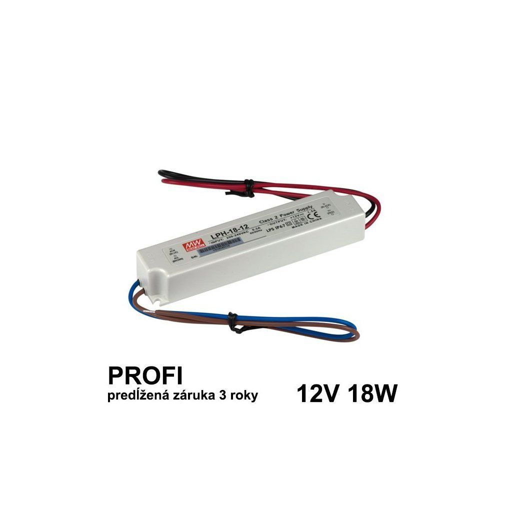 LED napájací zdroj 18W, 12V, IP67 - Vodeodolný MEAN-WELL