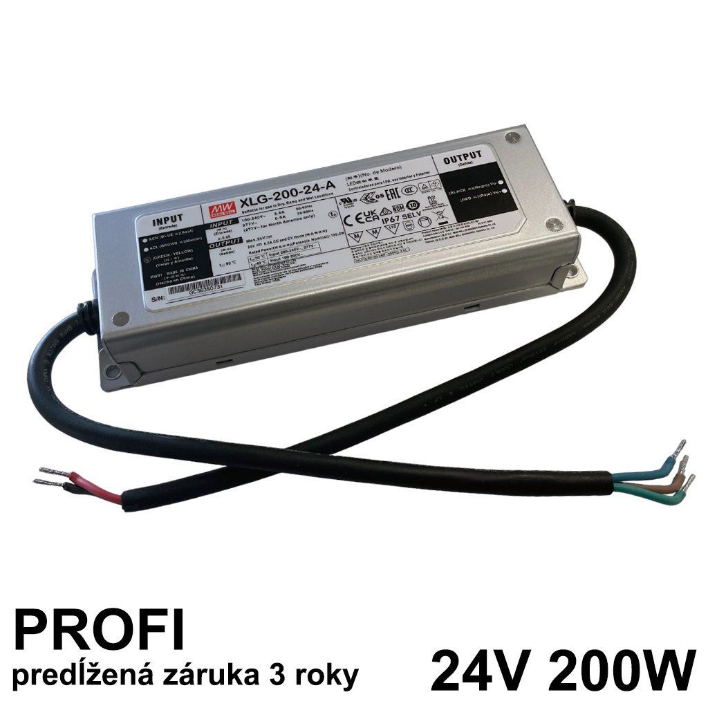 LED napájací zdroj 200W, 24V, PFC IP65 - Vodeodolný MEAN-WELL