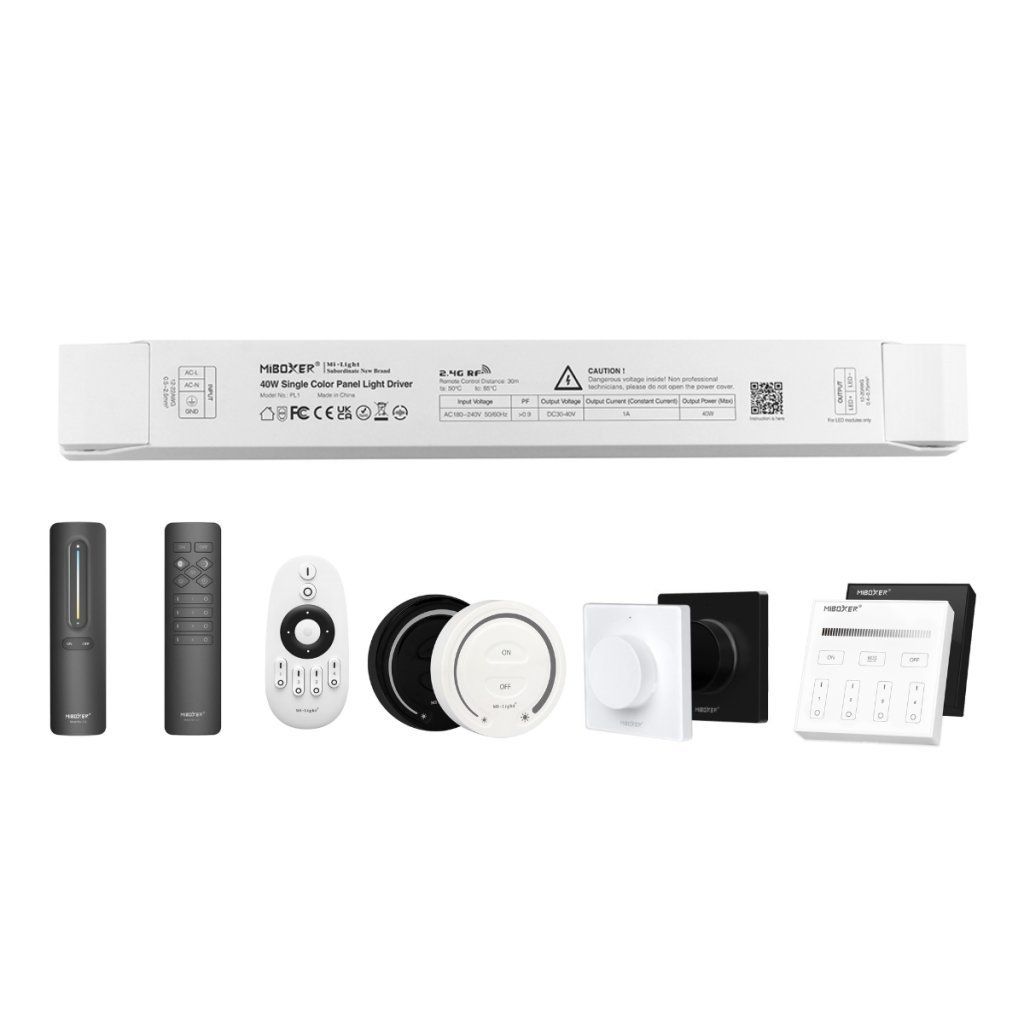 PL1 je plne kompatibilný s MiBoxer ovládačmi, čo zaručuje jednoduchosť a flexibilitu pri ovládaní osvetlenia. Okrem toho ponúka možnosť ovládania panelov aj pomocou Wi-Fi (WL-BOX2), čo umožňuje diaľkový prístup a ovládanie cez smartfón alebo hlasové asistenty ako Amazon Alexa a Google Assistant.