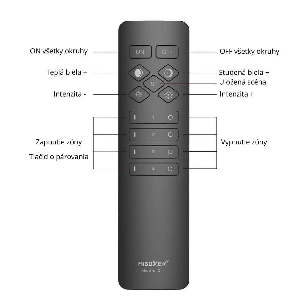 Diaľkový ovládač C1 je ideálny pre tých, ktorí hľadajú flexibilné a pohodlné ovládanie osvetlenia pre ich domov alebo pracovisko. S C1 Color Temperature Remote získate úplnú kontrolu nad atmosférou vašich priestorov s jednoduchým stlačením tlačidla.