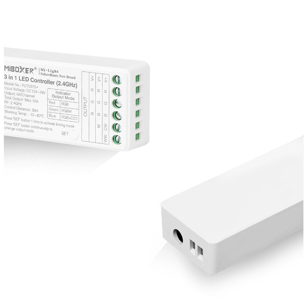 Pri zachovaní miniatúrnych rozmerov sa prijímač vyznačuje niekoľkými výhodami. Jeho maximálne zaťaženie je až 12A, čo umožňuje zapojiť až 144W LED pásov s napätím 12V, alebo 288W LED pásov s napätím 24V. Prijímač pracuje na frekvencii 2,4GHz, s dosahom až 30m. Nemusí byť viditeľný pre diaľkové ovládače, resp. môže byť ukrytý napr. v SDK podhľade, skrinke a pod.