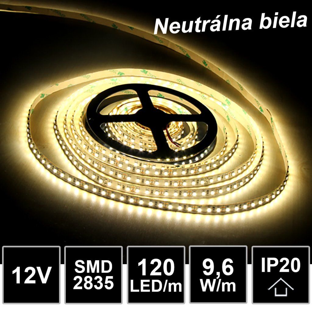 5m LED pásik 120LED/m SMD2835 9,6W/m neutrálna biela IP20 12V