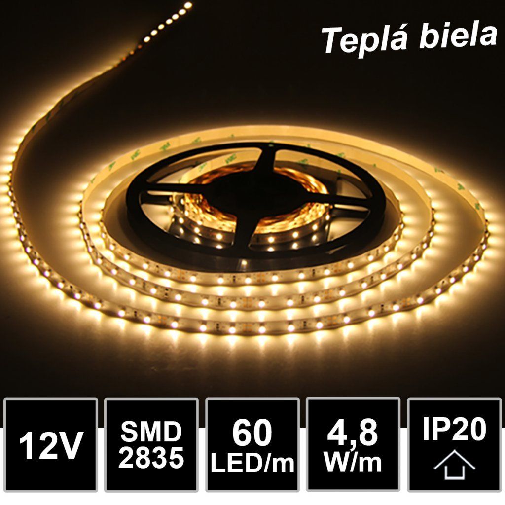 5m LED pásik 60LED/m SMD2835 4,8W/m teplá biela IP20 12V