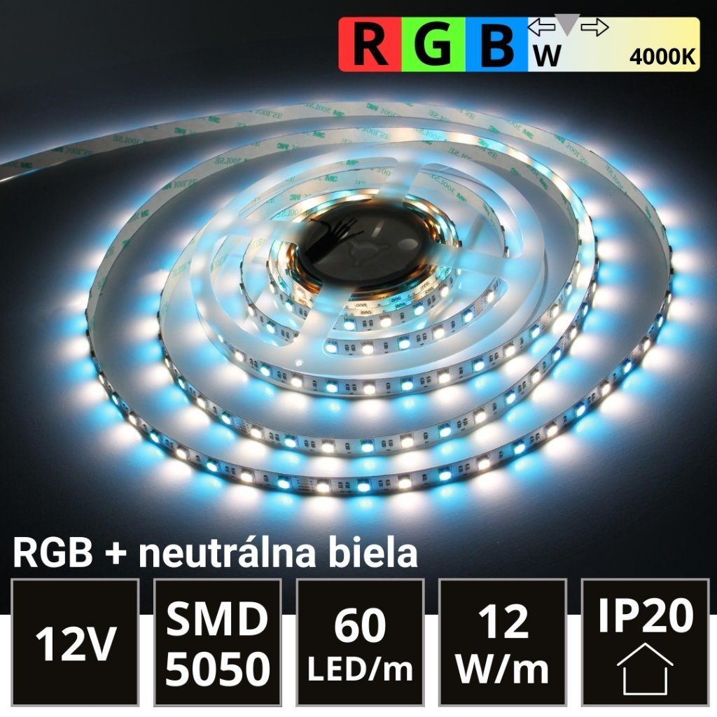 5m LED pásik 60LED/m SMD5050 12W/m IP20 RGB-NW (RGB+neutrálna biela) 12V