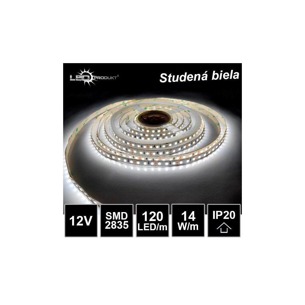 LED pásik 120LED/m SMD2835 14W/m studená biela IP20 12V