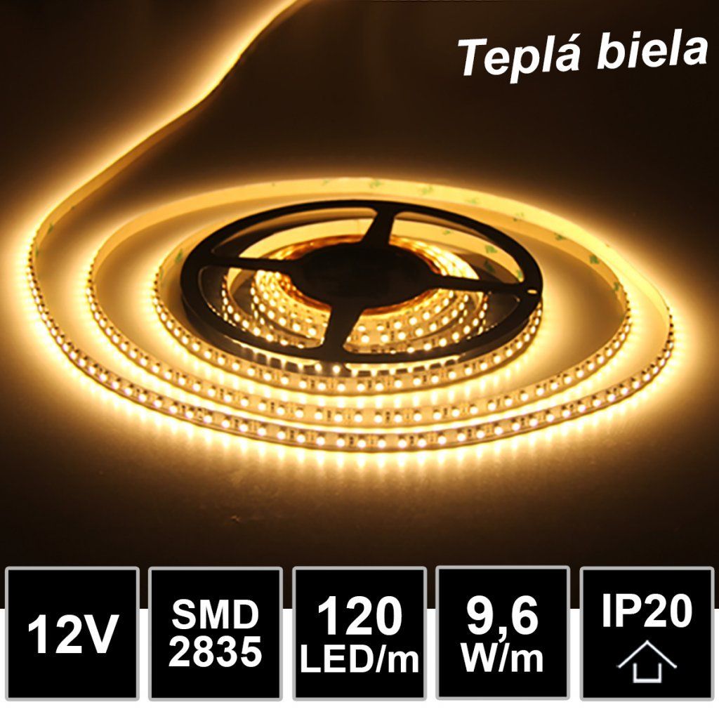 LED pásik 120LED/m SMD2835 9,6W/m teplá biela IP20 12V