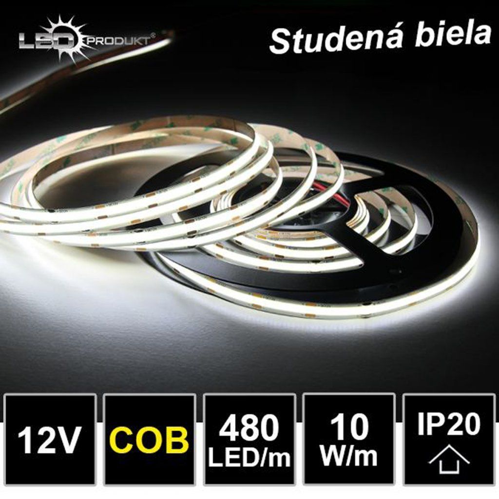 LED pásik 480LED/m COB 10W/m studená biela IP20 12V