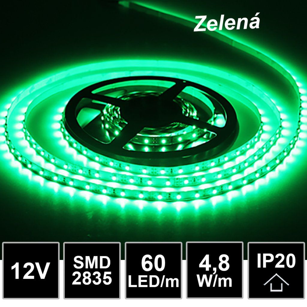 LED pásik 60LED/m SMD2835 4,8W/m zelený IP20 12V