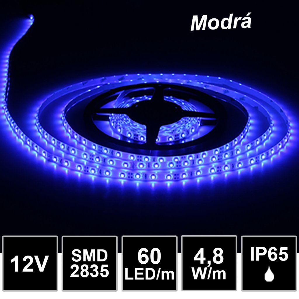 LED pásik 60LED/m vodeodolný SMD2835 4,8W/m modrý IP65 12V