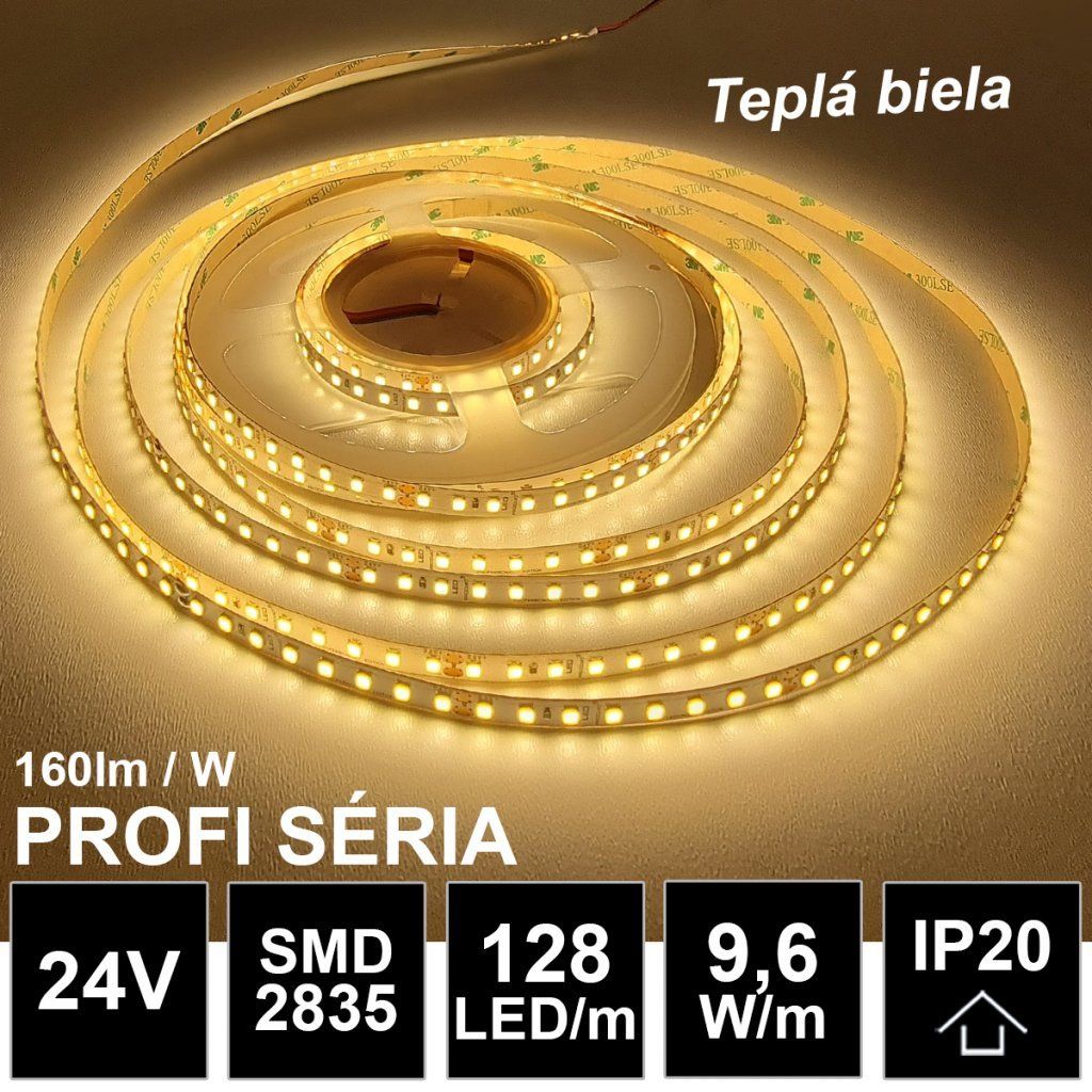 PROFI LED pásik 128LED/m SMD2835 9,6W/m teplá biela IP20 24V - vysokosvietivý