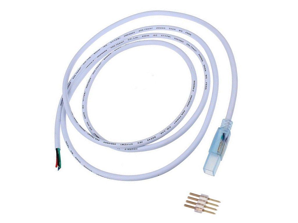 2m dlhá pripájacia šnúra pre RGB LED pásy a LED Neóny na 230V, slúžiaca na pripojenie k ovládaču farieb