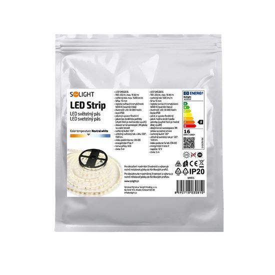Solight LED svetelný pás 5m, 198LED/m, 16W/m, 1500lm/m, IP20, neutrální biela