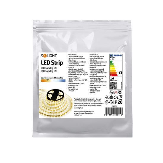 Solight LED svetelný pás 5m, 198LED/m, 16W/m, 1500lm/m, IP20, teplá biela