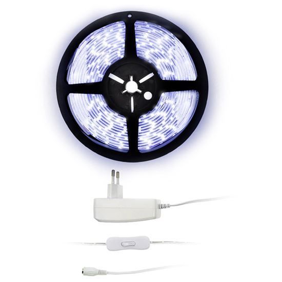 Solight LED svetelný pás s testrom, 5m, sada s 12V adaptérom, 4,8W/m, IP65, studená biela