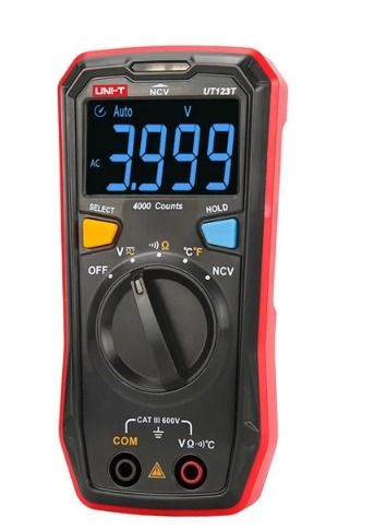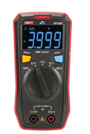 Multimeter UNI-T UT123T je jednoduchý vreckový prístroj pre domáce použitie. Kompaktná štruktúra uľahčuje držanie v jednej ruke a displej typu EBTN umožňuje používateľom získať čitateľne zobrazené hodnoty pri maximálnom uhle. Inteligentná bezkontaktná detekcia elektrického poľa AC, ktorá rozlišuje slabé, silné a super silné elektrické pole.