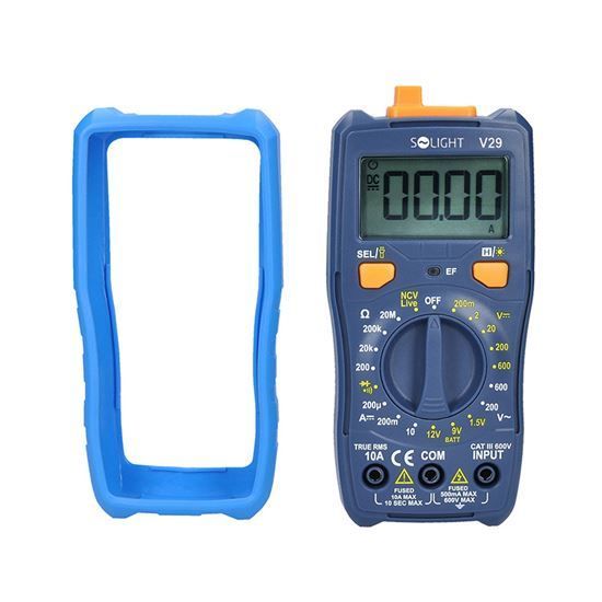Digitálny multimeter na meranie striedavého/jednosmerného napätia, jednosmerného prúdu, odporu a skutočnej efektívnej hodnoty (RMS hodnota striedavých priebehov). Ponúka test tranzistorov a diód, test spojitosti obvodov, detektor bezkontaktného napätia (NCV) a tester vodičov pod napätím (LIVE). Funkcia HOLD na uloženie nameranej hodnoty a LED svietidlo na lepšiu viditeľnosť. Ochrana proti preťaženiu s poistkami 10 A/600 V a 500 mA/600 V. Napájanie: 2x batérie AAA (sú súčasťou dodávky). rozmery: 154x75x35 mm, hmotnosť: 182 g.