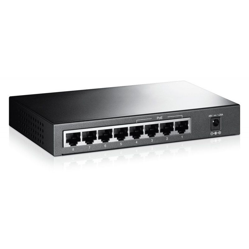 Precízne spracovaný switch TP-Link s kompaktným stolným dizajnom, ktorý ľahko zapadne do stiesneného firemného prostredia aj do domácnosti. Switch je vybavený 8 portami s rýchlosťou až 100 Mbps, takže pripojíte ďalšie prvky siete, ako sú switche, servery, diskové stanice a ďalšie. Navyše 4 z nich sú tzv. PoE, teda pre napájanie cez sieť dohromady až 46 W (v prípade, že port využije maximálne na jeden port, tj 15,4 W je možné použiť iba 3 porty). Databáza pre MAC adresy pojme až 8000 rôznych kombinácií a je pripravená pre neustále plné zaťaženie. Zariadenie podporuje najrôznejšie sieťové protokoly a samozrejmosťou je detekcia krosovaných káblov či informačný LED pre jednotlivé porty.
