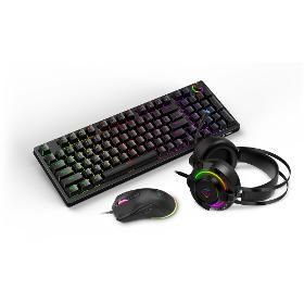 Herné slúchadlá so samonastaviteľným hlavovým mostom. Herná klávesnica