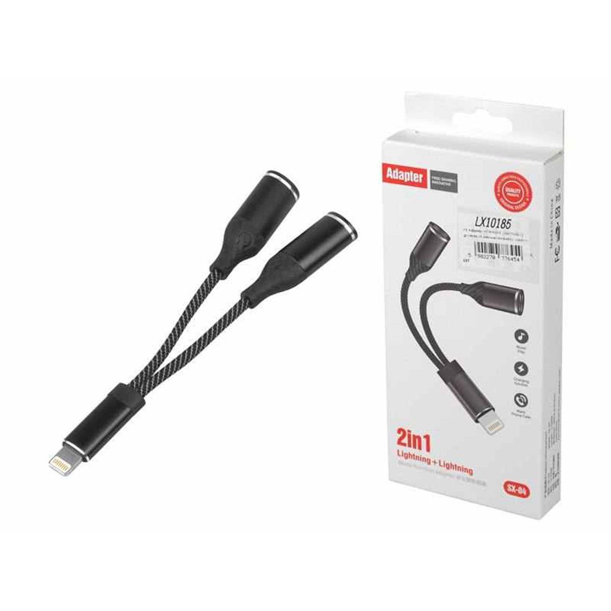 LX10185 Adapter HF IPHONE LIGHTING,2x zásuvka(nabíjanie+audio) čierny