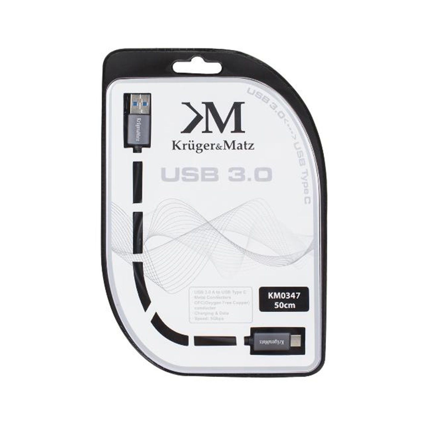 KM0347 Kábel USB 3.0V - USB typ C 5G 0,5m Kruger&Matz
