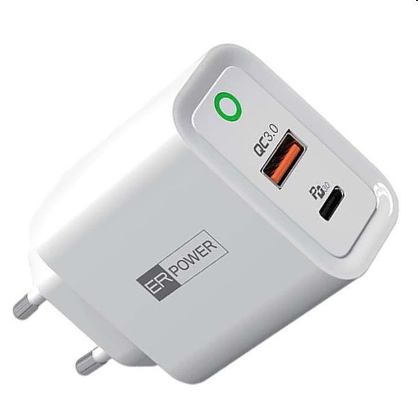 ER POWER Sieťová nabíjačka s USB-C/USB-A EU, PD, QC, biela [ERPW30PD2-WH]