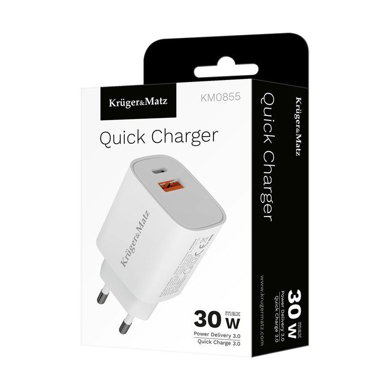 KM0855 Sieťová nabíjačka GaN dual USB 30W Quick Charge / PD Kruger&Matz
