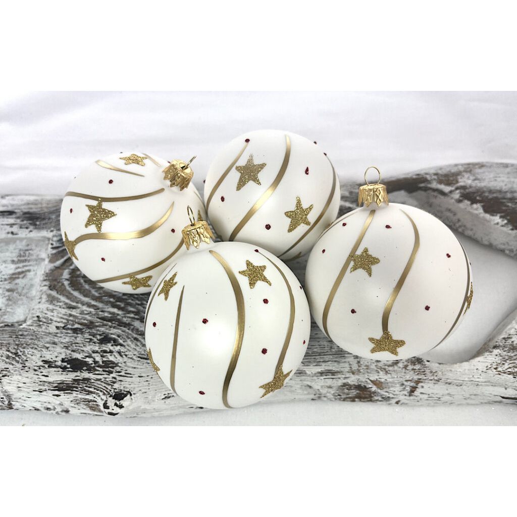 Vianočné gule 24/8743/8/4ks – biela + hviezdičky